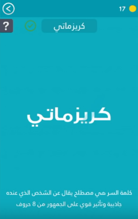 اجابة لغز هى مصطلح يقال عن الشخص الذى عنده جاذبية وتاثير قوى على الجمهور من 8 حروف من لعبة كلمة السر 2