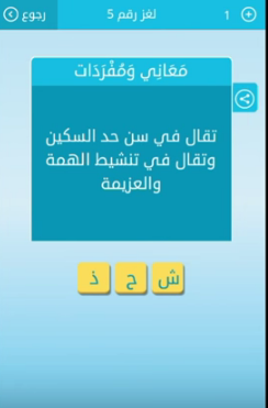 اجابة لغز تقال فى سن حد السكين وتقال فى تنشيط الهمة والعزيمة من لعبة رشفة اللغز رقم 5 من المجموعة الاولى