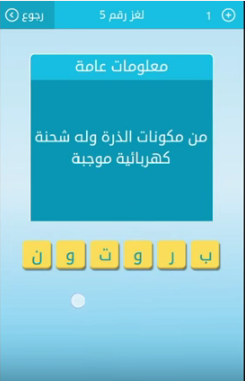 اجابة سؤال من مكونات الذرة وله شحنة كهربائية موجبة من لعبة رشفة اللغز رقم 5 من المجموعة الاولى