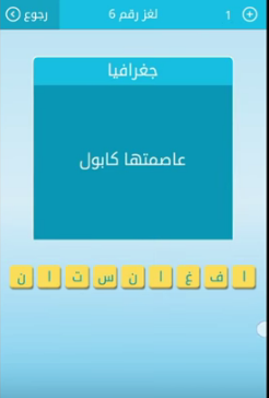 اجابة سؤال عاصمتها كابول من لعبة رشفة اللغز رقم 6 من المجموعة الاولى