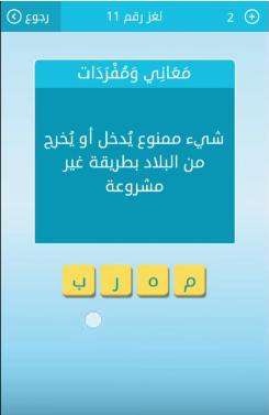 جواب لغز شيء ممنوع يدخل او يخرج من البلاد بطريقة غير مشروعة من اللغز رقم 11 من لعبة رشفة للمجموعة الثانية