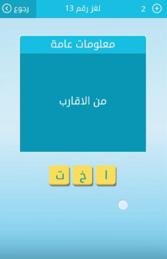 اجابة سؤال من الاقارب من لعبة رشفة اللغز رقم 13 من المجموعة الثانية