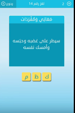 اجابة لغز سيطر على غضبه وحبسه وامسك نفس من لعبة رشفة رقم 14 المجموعة الثانية