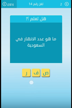 حل سؤال ما هو عدد الانهار فى السعودية من لعبة رشفة رقم 14 المجموعة الثانية