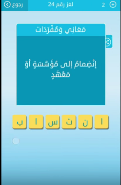 جواب سؤال انضمام الى مؤسسة او معهد من لعبة رشفة لغز رقم 24 للمجموعة الثالثة