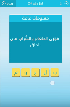 اجابة لغز مجرى الطعام والشراب فى الحلق من لعبة رشفة لغز رقم 24 للمجموعة الثالثة
