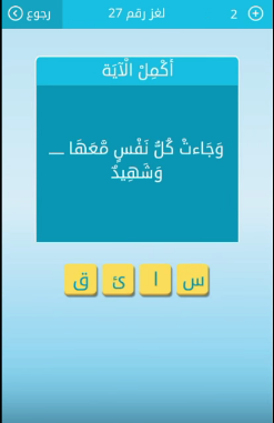 اجابة سؤال وجاءت كل نفس معها ـــ وشهيد من لعبة رشفة لغز رقم 27 للمجموعة الثالثة