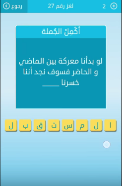 اجابة سؤال لو بدأنا معركة بين الماضى والحاضر فسوف نجد اننا خسرنا ـــ من لعبة رشفة لغز رقم 27 للمجموعة الثالثة