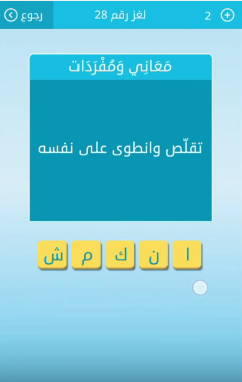 اجابة سؤال تقلص وانطوى على نفسه من لعبة رشفة لغز رقم 28 للمجموعة الرابعة