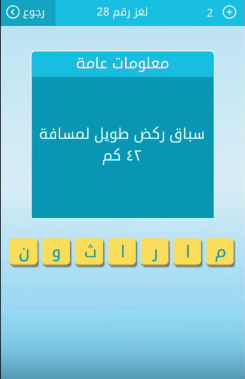 حل سؤال سباق ركض طويل لمسافة 42 كم من لعبة رشفة لغز رقم 28 للمجموعة الرابعة