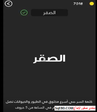حل هى اسرع مخلوق فى الطيور والحيوانات تصل سرعته الى 400 كم فى الساعة من 5 حروف من لعبة كلمة السر 2