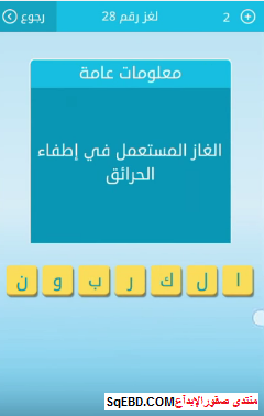 اجابة سؤال الغاز المستعمل فى اطفاء الحرائق من لعبة رشفة لغز رقم 28 للمجموعة الرابعة