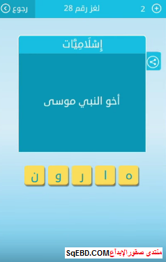 جواب سؤال اخو النبى موسى من لعبة رشفة لغز رقم 28 للمجموعة الرابعة