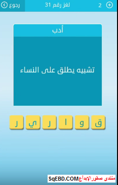 اجابة لغز تشبيه يطلق على النساء من لعبة رشفة لغز رقم 31 للمجموعة الرابعة