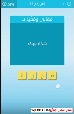 حل لغز شدة وبلاء من لعبة رشفة لغز رقم 32 للمجموعة الرابعة