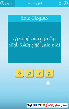 حل سؤال بيت من صوف او قطن يقام على اعواد ويسد باوتاد من لعبة رشفة لغز رقم 32 للمجموعة الرابعة