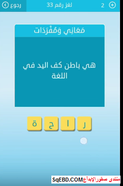 حل لغز هى باطن كف اليد فى اللغة من لعبة رشفة لغز رقم 33 للمجموعة الرابعة