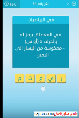 اجابة لغز فى المعادلة يرمز له بالحرف او س معكوسة من اليسار الى اليمين من لعبة رشفة لغز رقم 34 للمجموعة الرابعة