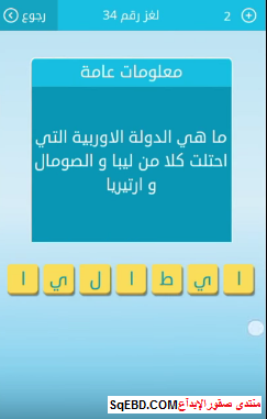 اجابة سؤال ما هى الدولة الاوربية التى احتلت كلا من ليبيا والصومال وارتيريا من لعبة رشفة لغز رقم 34 للمجموعة الرابعة