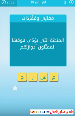 جواب لغز المنصة التى يؤدى فوقها الممثلون ادوارهم لغز رقم 38 للمجموعة الخامسة من لعبة رشفة