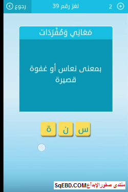 اجابة سؤال بمعنى نعاس او غفوة قصيرة لغز رقم 39 للمجموعة الخامسة من لعبة رشفة