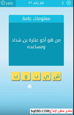 حل لغز من هو اخو عنترة بد شداد ومساعده من اللغز رقم واحد والاربعون من لعبة رشفة للمجموعة الخامسة