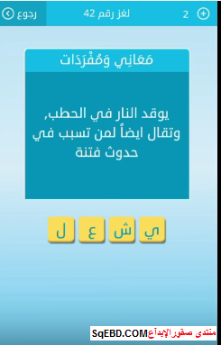 حل لغز يوقد النار فى الحطب وتقال ايضا لمن تسبب فى حدوث فتنة من اللغز رقم 42 من لعبة رشفة للمجموعة الخامسة