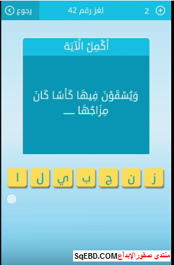 جواب لغز ويسقون فيها كاسا كان مزاجها ـــ من اللغز رقم 42 من لعبة رشفة للمجموعة الخامسة