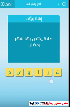 حل لغز صلاة يختص بها شهر رمضان من اللغز رقم 44 من لعبة رشفة للمجموعة الخامسة
