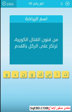 اجابة سؤال من فنون القتال الكورية ترتكز على الركل بالقدم من اللغز رقم 46 من لعبة رشفة للمجموعة السادسة