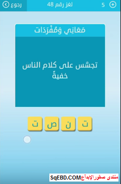 جواب سؤال تجسس على كلام الناس خفية من اللغز رقم 48 من لعبة رشفة للمجموعة السادسة