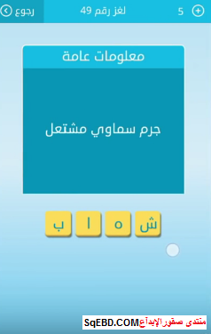 جواب لغز جرم سماوى مشتعل من اللغز رقم 49 من لعبة رشفة للمجموعة السادسة