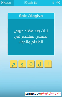 جواب لغز نبات يعد مضاد حيوى طبيعى يستخدم فى الطعام والدواء من اللغز رقم 50 من لعبة رشفة للمجموعة السادسة