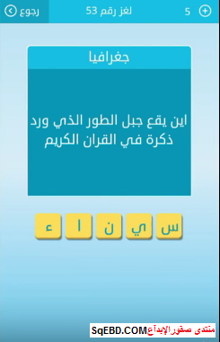 اجابة لغز اين يقع جبل الطور الذى ذكره فى القران الكريم من اللغز رقم 53 من لعبة رشفة للمجموعة السادسة