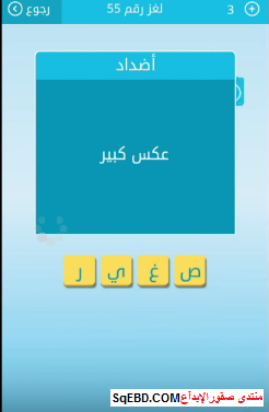 جواب لغز عكس كبير من اللغز رقم 55 من لعبة رشفة للمجموعة السابعة