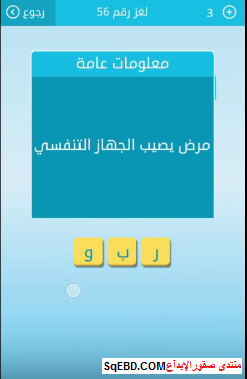 جواب سؤال مرض يصيب الجهاز التنفسى من اللغز رقم 56 من لعبة رشفة للمجموعة السابعة
