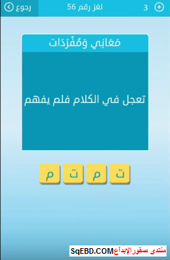 اجابة لغز تعجل فى الكلام فلم يفهم من اللغز رقم 56 من لعبة رشفة للمجموعة السابعة
