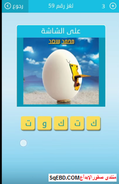 اجابة سؤال على الشاشة لغز رقم 59 للمجموعة السابعة من لعبة رشفة