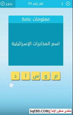 جواب سؤال اسم المخابرات الاسرائيلية لغز رقم 59 للمجموعة السابعة من لعبة رشفة