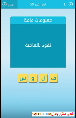 جواب لغزنقود بالعامية لغز رقم 59 للمجموعة السابعة من لعبة رشفة