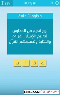 جواب لغز نوع قديم من المدارس لتعليم الصبيان القراءة والكتابة وتحفيظهم القرآن لغز رقم 60 للمجموعة السابعة من لعبة رشفة