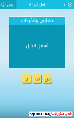 اجابة لغز اسفل الجبل لغز رقم 60 للمجموعة السابعة من لعبة رشفة