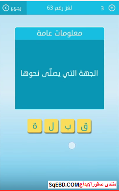 جواب سؤال الجهة التى يصلى نحوها لغز رقم 63 للمجموعة السابعة من لعبة رشفة