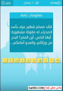 وهى خصيصا لشهر رمضان الفضيل وهى لعبة عبارة عن مسابقة رمضانية شاملة ثقافية مطورة وهى كل يوم رمضان لغز جديد ومميز ونبدأ على بركة الله بلغز 1 رمضان من لعبة رشفة رمضانية