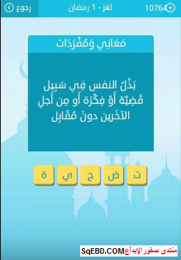 حل لغز بذل النفس في سبيل قضية أو فكرة أو من أجل الآخرين دون مقابل من لغز 1 رمضان من لعبة رشفة رمضانية