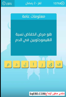 اجابة لغز هو مرض انخفاض نسبة الهيموجلوبين في الدم من لغز 2 رمضان من لعبة رشفة رمضانية