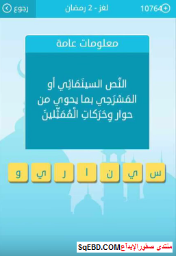 اجابة لغز النص السينمائي أو المسرحي بما يحوي من حوار وحركات الممثلين من لغز 2 رمضان من لعبة رشفة رمضانية
