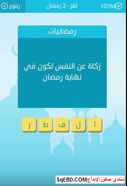 حل لغز زكاة عن النفس تكون في نهاية رمضان من لغز 2 رمضان من لعبة رشفة رمضانية