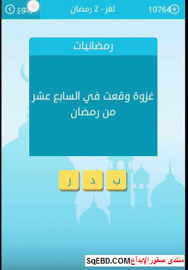 جواب لغز غزوة وقعت في السابع عشر من رمضان من لغز 2 رمضان من لعبة رشفة رمضانية