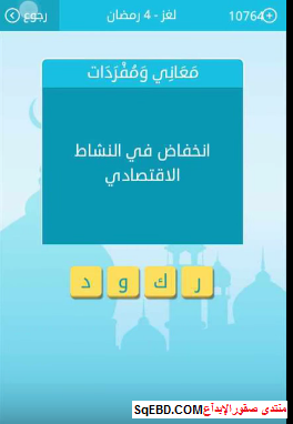جواب لغز انخفاض في النشاط الاقتصادي من لغز 4 رمضان من لعبة رشفة رمضانية